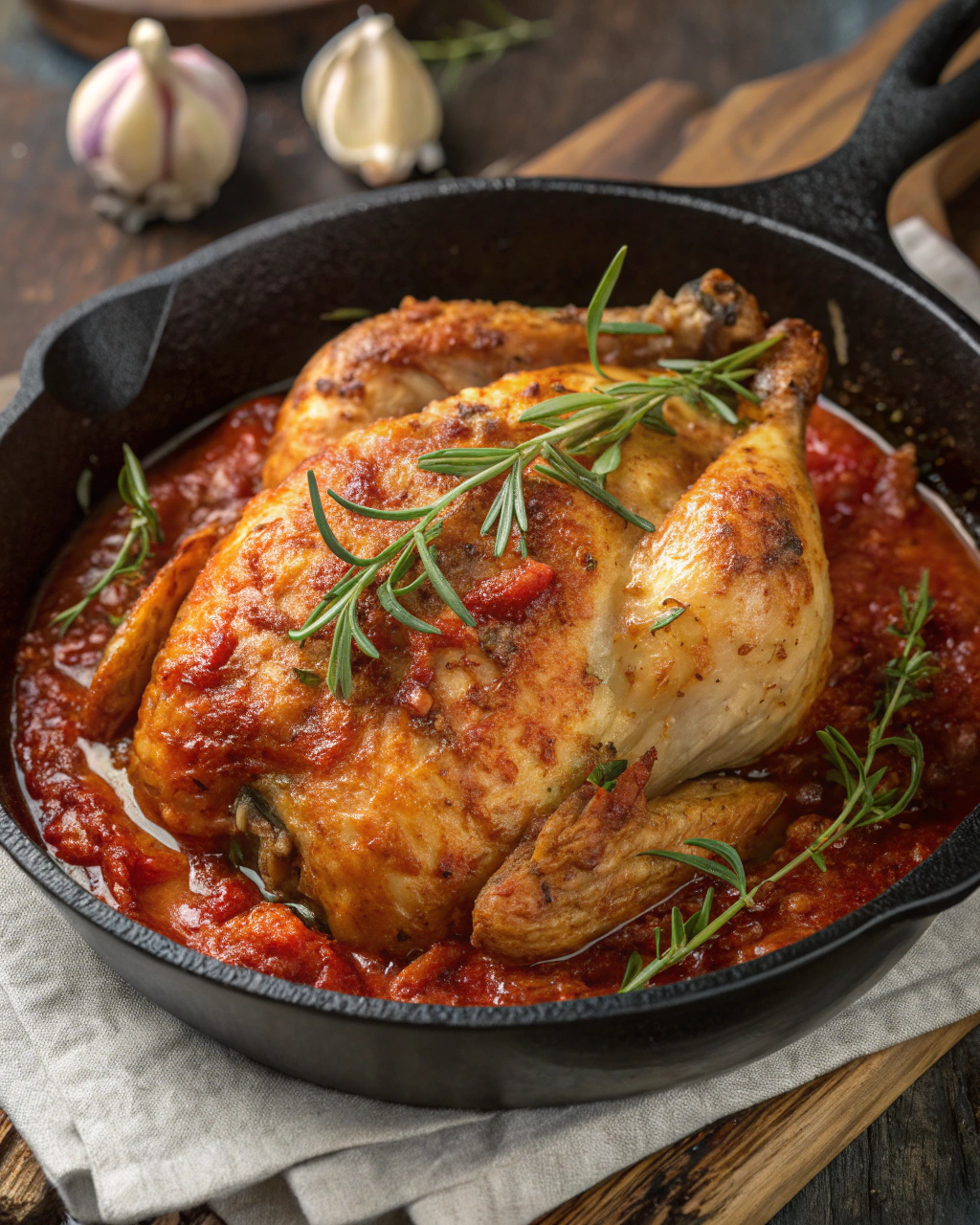 Quando penso al pollo alla cacciatora, mi viene subito in mente la domenica in famiglia, quando mia nonna metteva su il suo famoso tegame, e tutta la casa si riempiva di profumi che sembravano baciarti il cuore. Ecco, oggi ti propongo una versione veloce di questa bontà, perfetta per quando hai voglia di un piatto ricco e confortante ma senza passare ore davanti ai fornelli. Ti prometto che, tra il profumo di pomodoro, rosmarino e aglio che sfrigolano, ti sembrerà di stare proprio nella sua cucina, con in mano un buon bicchiere di vino. Pronta a cucinarlo insieme?